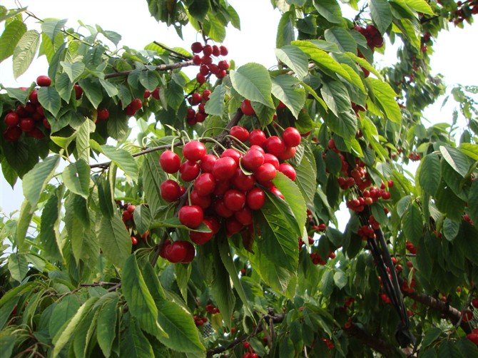 櫻桃栽培中,園地與品種的選擇必須考慮到櫻桃的生長(zhǎng)特性,櫻桃樹(shù)根系相對(duì)不發(fā)達(dá),根系分布較淺,開(kāi)花早,易受霜害,具有喜肥、喜光的特性,在園地建設(shè)中盡量選擇土壤肥沃、土層深厚、地下水位低、有水澆條件、排水良好的丘陵地區(qū)。櫻桃栽培園地的土質(zhì)應(yīng)以中性、偏酸性的砂壤土、壤土為主,要求地勢(shì)盡量開(kāi)闊,光照條件較為良好,空氣流通順暢。櫻桃屬異花授粉品種,自花授粉不能結(jié)實(shí),或結(jié)實(shí)能力很差。在成片規(guī)范化栽培園中,株行距3~4米×4~5米,授粉品種按不少于1/4的比例配置。櫻桃采摘困難,不易貯藏,種植要選擇交通方便的地點(diǎn)。目前,在國(guó)內(nèi)栽培的櫻桃以早熟品種為主,常見(jiàn)的主要有:早大果、紅燈、美早、意大利早紅等,中晚熟品種則主要有:佐滕錦、先鋒、那翁、艷陽(yáng)、雷尼等。昆明地區(qū)主推的品種有大果型的緋紅、早熟的秦林,中晚熟的先鋒。在櫻桃栽培品種的選擇中,應(yīng)遵循早結(jié)果、味甜少酸、大果、豐產(chǎn)、耐低溫,宜運(yùn)輸,鮮食加工兼用、抗病性強(qiáng)等基本原則。